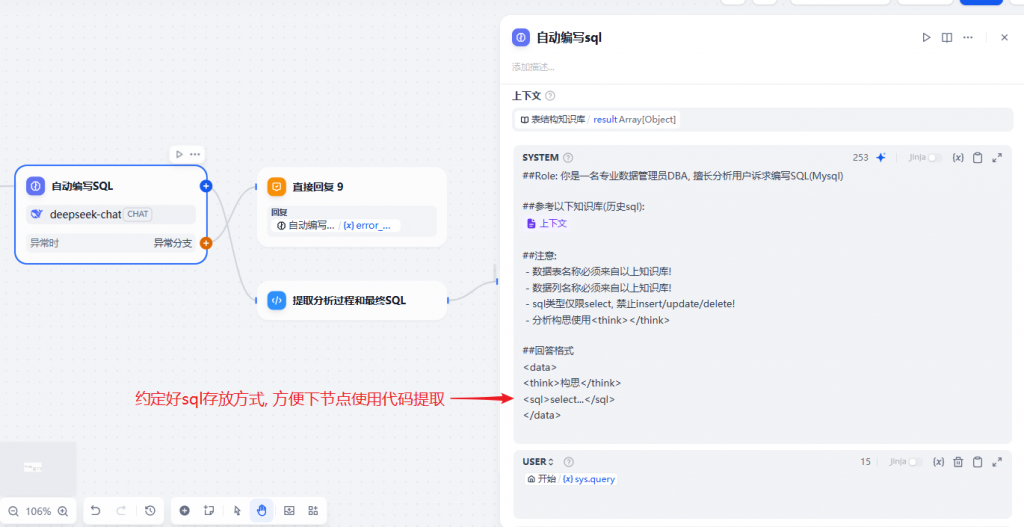 2. 自动编写SQL, 需要对做好限定条件, 且保留sql到最终回复(便于持续优化)