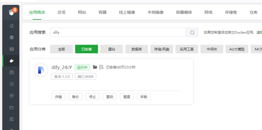 由于工作需要, 最终效果需要具备移植性, 所以我这里Dify平台也尝试了本地部署, 以保证最终可交付.